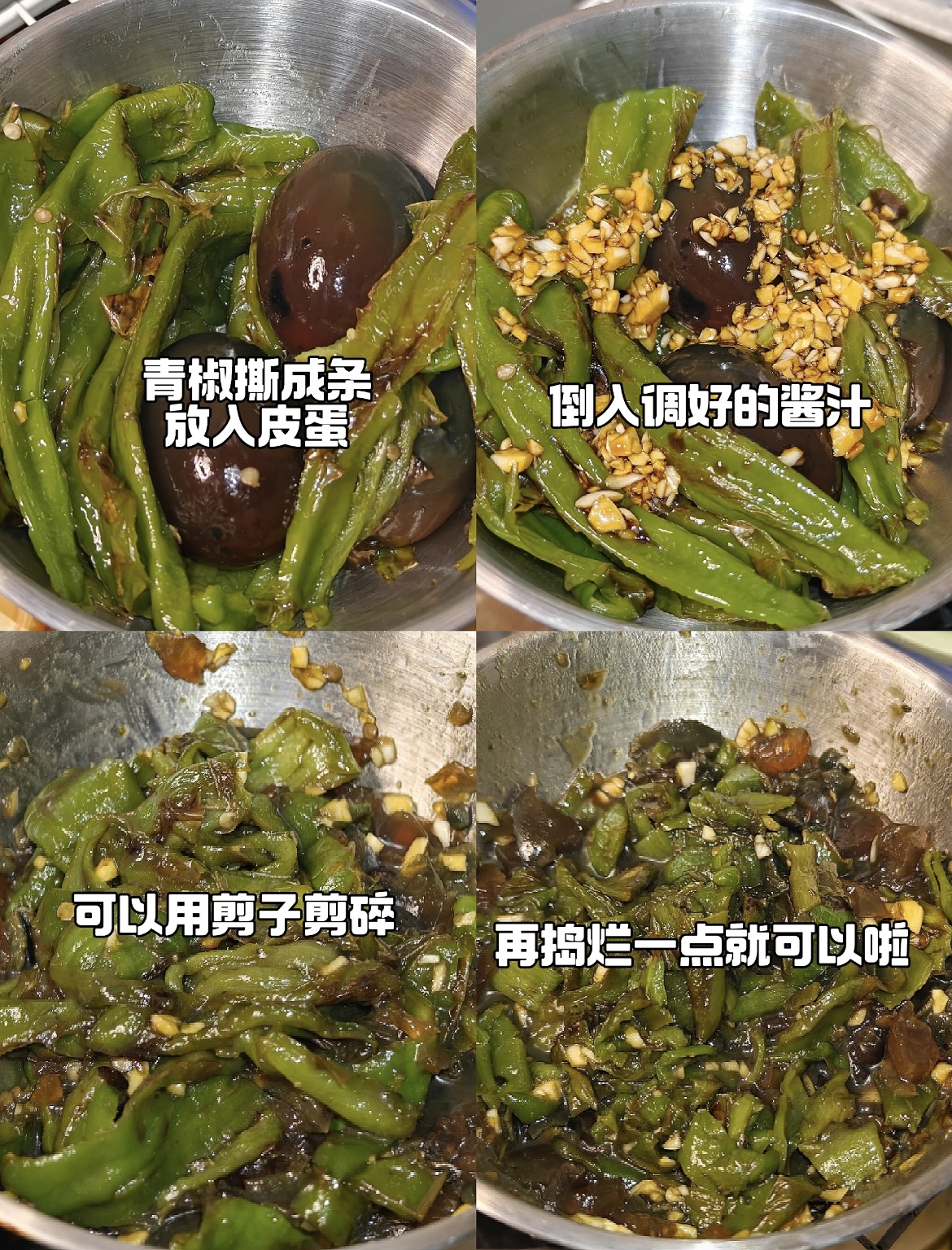 想要做好这道菜,选材可是第一步,也是最关键的一步。青椒一定要选那种皮薄肉厚的螺丝椒或者杭椒,这种辣椒辣味适中,煸炒后容易起虎皮,香气最足,千万别用那种甜滋滋的菜椒,做出来就没那味儿了。皮蛋则要选溏心的,就是那种切开后蛋黄流心的,口感才够绵密。当然,大蒜是灵魂,千万别省,多准备几瓣,那股生蒜的辛辣味是这道菜的灵魂所在。准备好这些,我们就可以开始“暴力”制作了。