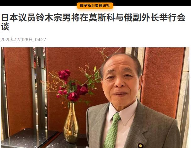 据俄罗斯通讯社12月26日报道,日本自民党老政客铃木宗男25日已经启程前往莫斯科。