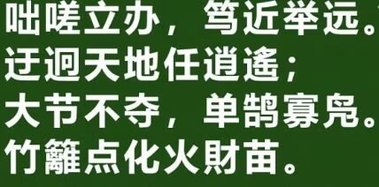 诗句 “迂迥天地任逍遥” 勾勒出不受世俗束缚的豁达人生,而 “竹篱点化火财苗” 则揭示从朴素日常中发掘生机的智慧 —— 前者追求精神的自由无拘,后者注重现实的创造与生机,古人早已懂得在理想与现实间寻得平衡。
