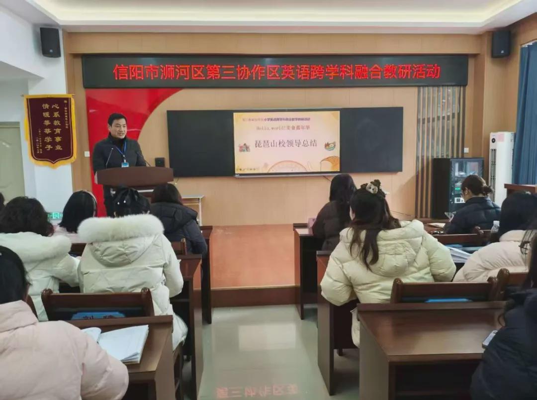 为深化小学英语课堂教学改革,落实核心素养导向的英语教学目标,探索学科融合视角下的趣味英语课堂新模式,12月23日,信阳市琵琶山学校小学部联合协作区内多所小学开展了小学英语学科融合教学研讨活动。来自各校的小学英语骨干教师齐聚一堂,共赏精彩课例,共研融合妙招,共话教学成长。