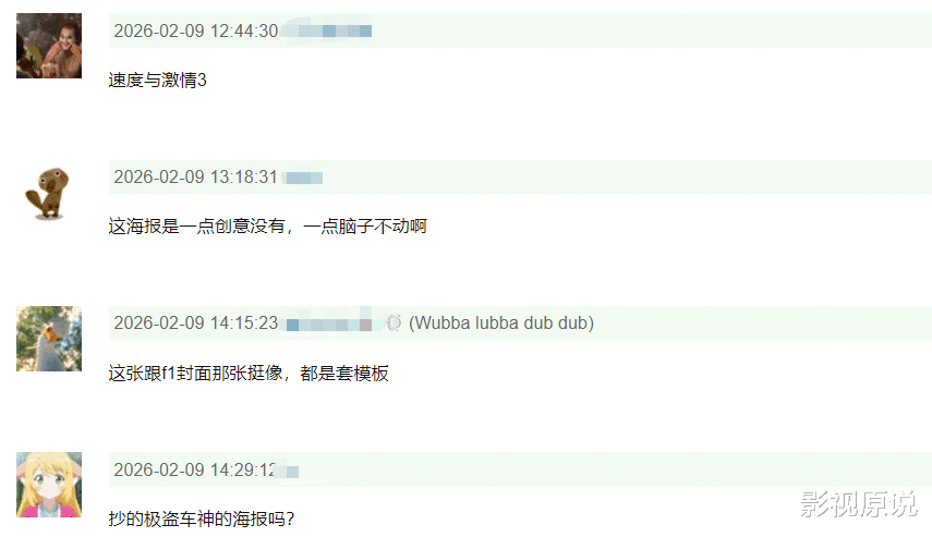 因此不少观众都评论说:“《飞驰人生3》的海报一点创意都没有,感觉它就是在抄袭好莱坞的《F1:狂飙飞车》”。