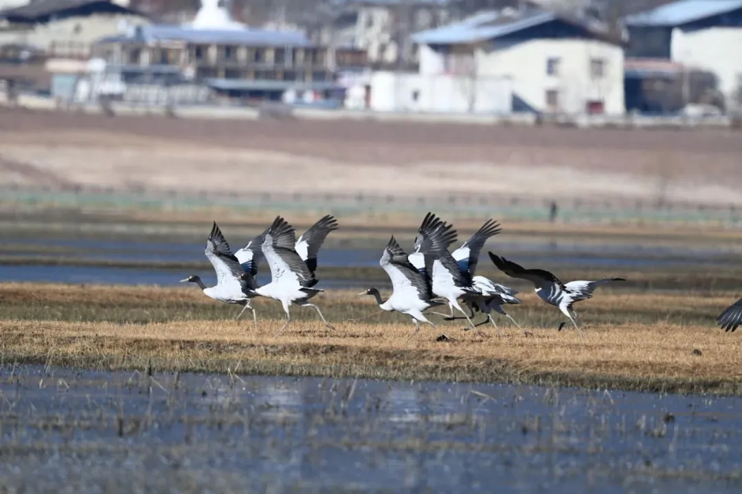 月光广场篝火燃起,弦音阵阵,舞步铿锵。与迪庆本地群众手拉手,踏歌起舞,在欢声笑语中,感受新年的热烈,让温情与年味在古城回荡。四漫步纳帕海,赏一湖候鸟翩跹