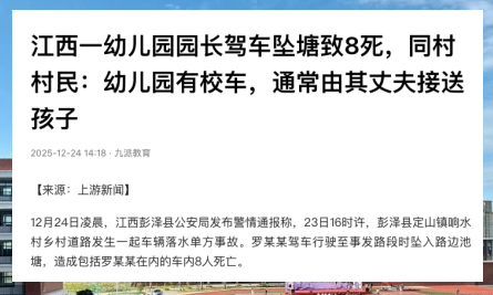 通报很简短:23日下午,园长罗某某驾车坠入池塘,车内8人全部遇难。直到九派教育更完整的后续报道出现,这起惨剧才显露出它最令人心碎的那种“平常感”。