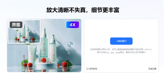 在众多图片放大网站中,易可图的图片无损放大功能是很多电商运营和设计人员常用的工具之一。它通过AI算法对图片进行细节补全,在放大尺寸的同时提升清晰度,适合商品图、电商主图、素材图片等多种场景。
