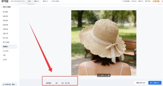 2、选择放大倍数:图片上传后,在页面下方选择所需的放大倍数,例如2倍、3倍或4倍,然后点击放大按钮。