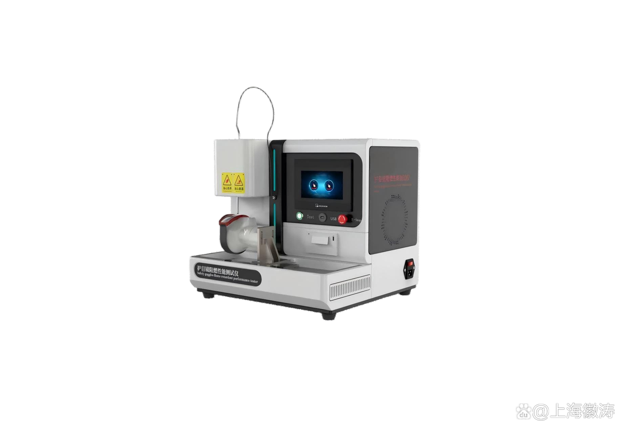### 一、设备原理与技术参数眼镜阻燃性能测试仪主要通过模拟实际火源接触场景,检测材料的燃烧速度、自熄时间及熔滴情况。典型设备包含以下核心模块:1. **火源控制系统**:采用标准丙烷或丁烷火焰,火焰高度可调(通常为20-40mm),温度范围控制在800℃~1000℃。2. **试样夹具**:可固定镜片或镜框,确保测试时试样与火焰呈45°或90°夹角(依据不同标准要求)。3. **计时装置**:精确记录材料接触火焰后的燃烧持续时间及停止燃烧后的阴燃时间,精度达0.1秒。4. **数据采集系统**:部分高端型号配备热成像仪或传感器,可实时监测材料表面温度变化。