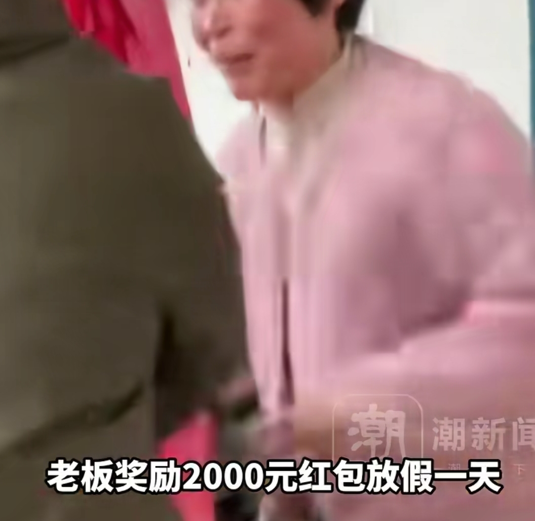 当老板知道后,心里又激动又感动,便给她一天的休假并且还给2000块钱的红包作为奖励!