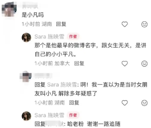 前女友发文细节。用户"Sara施映雪"晒出与白宇的早年亲密合照,两人依偎肩头,及微博互动历史截图,证实恋爱关系。其中特别澄清白宇网名小凡寓意小小平凡,与女性无关,解答粉丝多年疑惑。