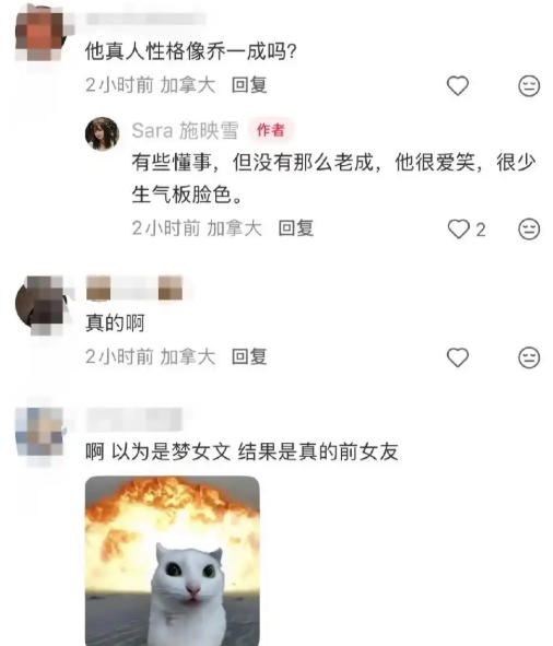 评论区回应网友时,她形容白宇真人懂事但没那么老成,很爱笑,很少生气板脸色。