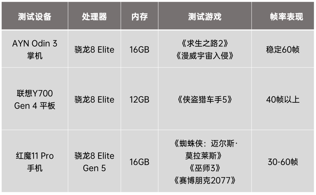 首先登场的是 AYN Odin 3 掌机,这款设备搭载了高通骁龙 8 Elite 处理器,配备 16GB 内存。在运行《求生之路2》和《Marvel Cosmic Invasion》(漫威宇宙入侵)时,两款游戏都能够稳定维持在60帧,几乎没有明显卡顿和掉帧现象,表现极为稳定。