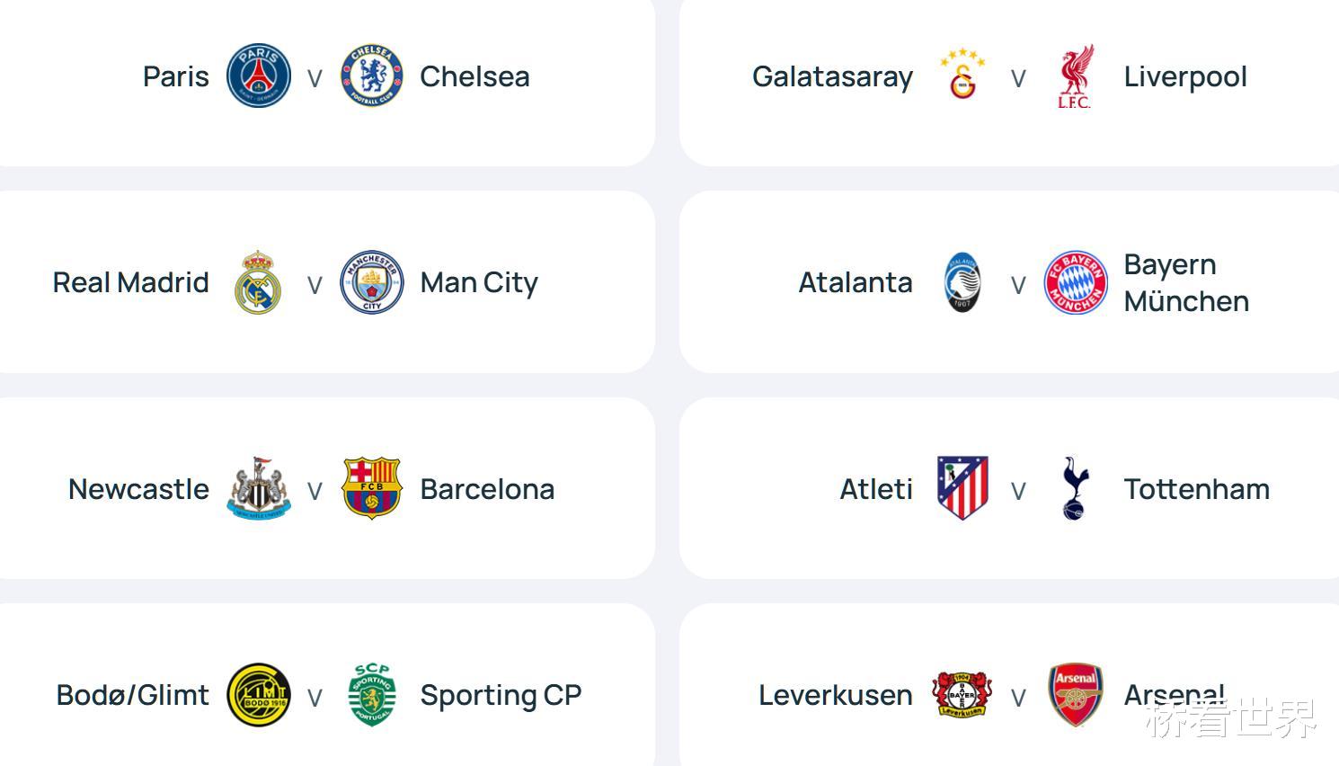「欧冠 1/8 决赛完整对阵」