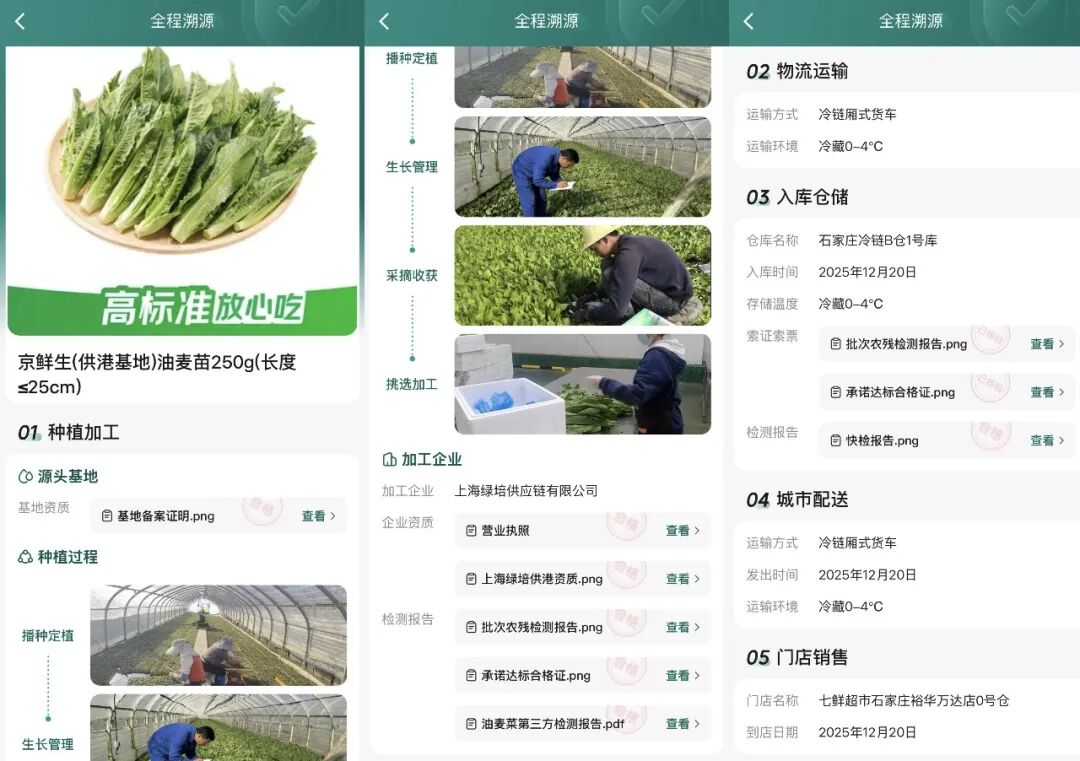 尤其是叶菜,采摘后在路上多停几小时,脆度就会明显下降。但这段时间到底经历了几次转手、在哪个环节等待、冷链有没有断点,消费者几乎无法追溯。于是“新鲜”就变成一种很难对证的感受。