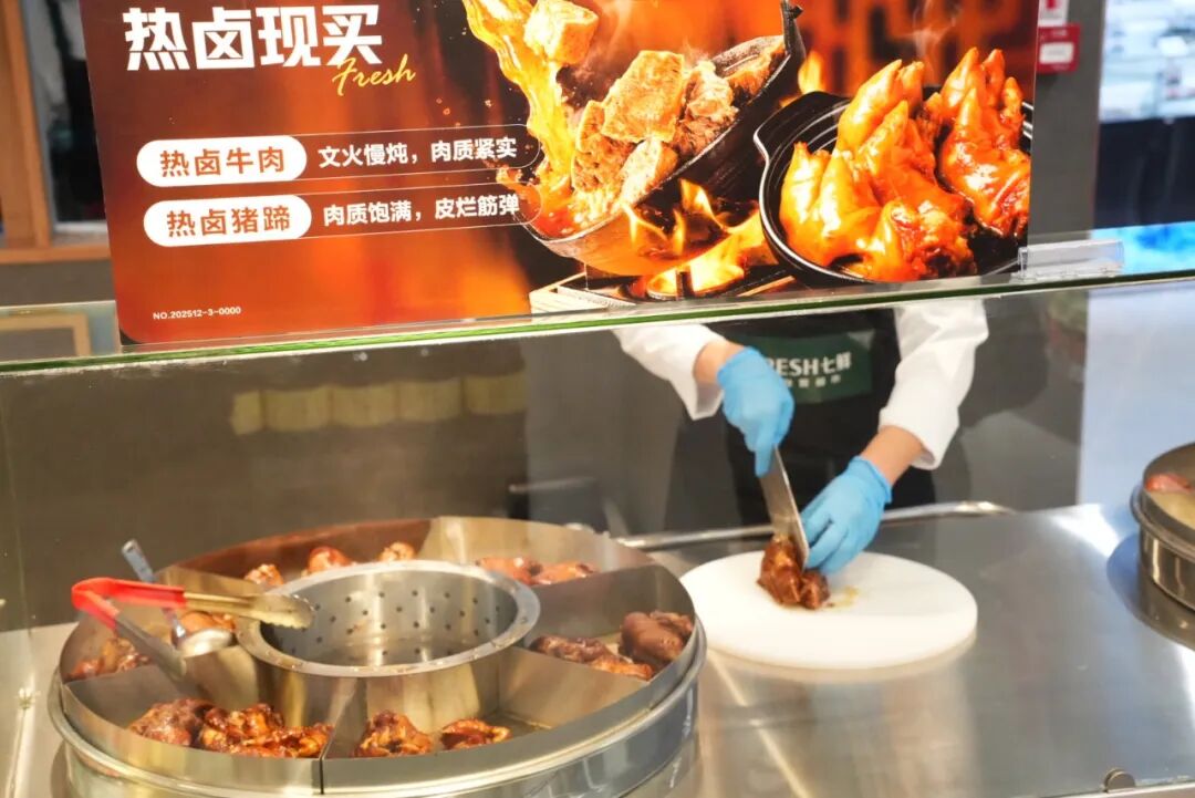 七鲜给出的解法有三点:其一,持续做强生鲜,把“新鲜”做成稳定的商品力;其二,强化现制与加工服务,提高制作透明度,把热气腾腾的现场感摆到台面上;其三,放大自有品牌占比,提供更多独家商品。