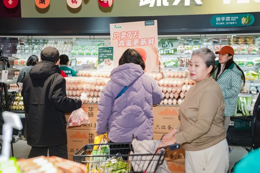 7天售卖期会放大周转压力,因此鸡蛋的链条也更聚焦。采访提到,目前主推两款自有品牌鲜蛋(15枚、30枚),货架周转大约3—4天,用更快的动销去支撑短售卖期;到期产品按规则撤下,并配合门店端处理方式完成闭环,避免“7日”停留在标识层面。