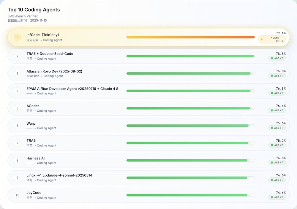 在SWE-Bench Verified榜单上,InfCode能以79.4%的Pass@1得分刷新世界最佳,关键是突破了传统大模型“单打独斗”的局限,用了“大模型+Agent”的协同架构。这个架构能精准复刻真实的研发流程,通过拆解问题、检索网络找信息、修复代码、验证单测的闭环,大大提升了复杂问题的解决能力。