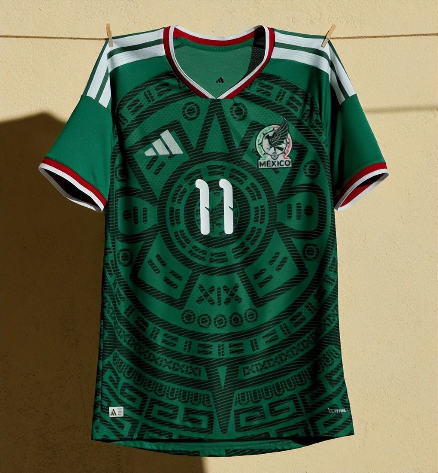 墨西哥的队服自然还是深绿底色,不过这次带有玛雅文明神秘色彩的图腾非常加分。
