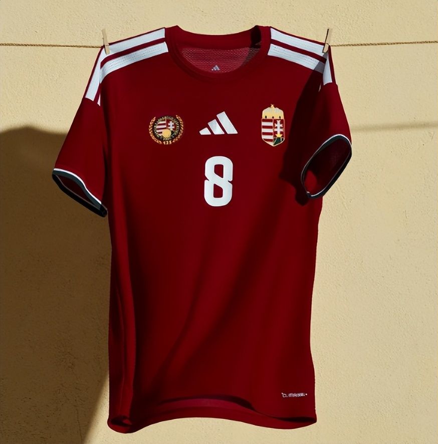 匈牙利的球衣可能是2026年美加墨世界杯参赛队伍里最简洁的一款,就只是简单的深红底色,只有袖口带有很细的国旗三色条纹。