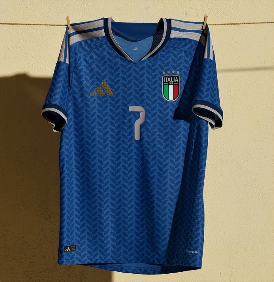 意大利这款球衣上布满深蓝色的叶片图案,多少显得有些累赘,到底好不好看,那就见仁见智了。