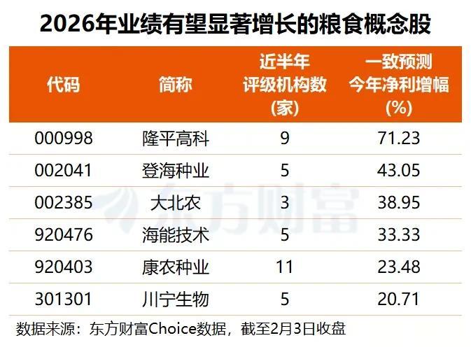 隆平高科有望实现超七成净利增长,登海种业、大北农预计增幅约四成,海能技术、康农种业也有不俗预期。