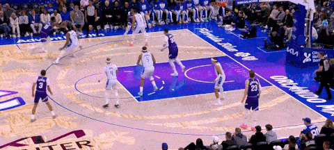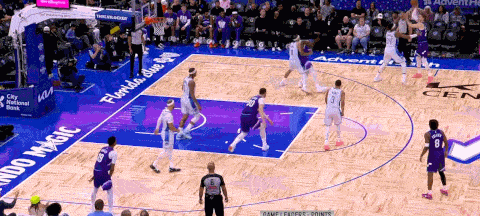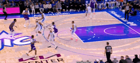 这一次是杰克逊在肘区的keep持球找人策应,左侧科迪绕掩护拉开空间,杰克逊和柯利尔展开配合,掩护后迅速pop至弧顶接球快速出手三分命中。