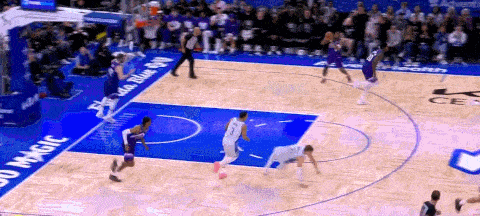 这次也是无球端的反向无球掩护,贝利为杰克逊掩护提上接球,杰克逊接森萨博出球用弱侧手突破艾萨克完成抛投: