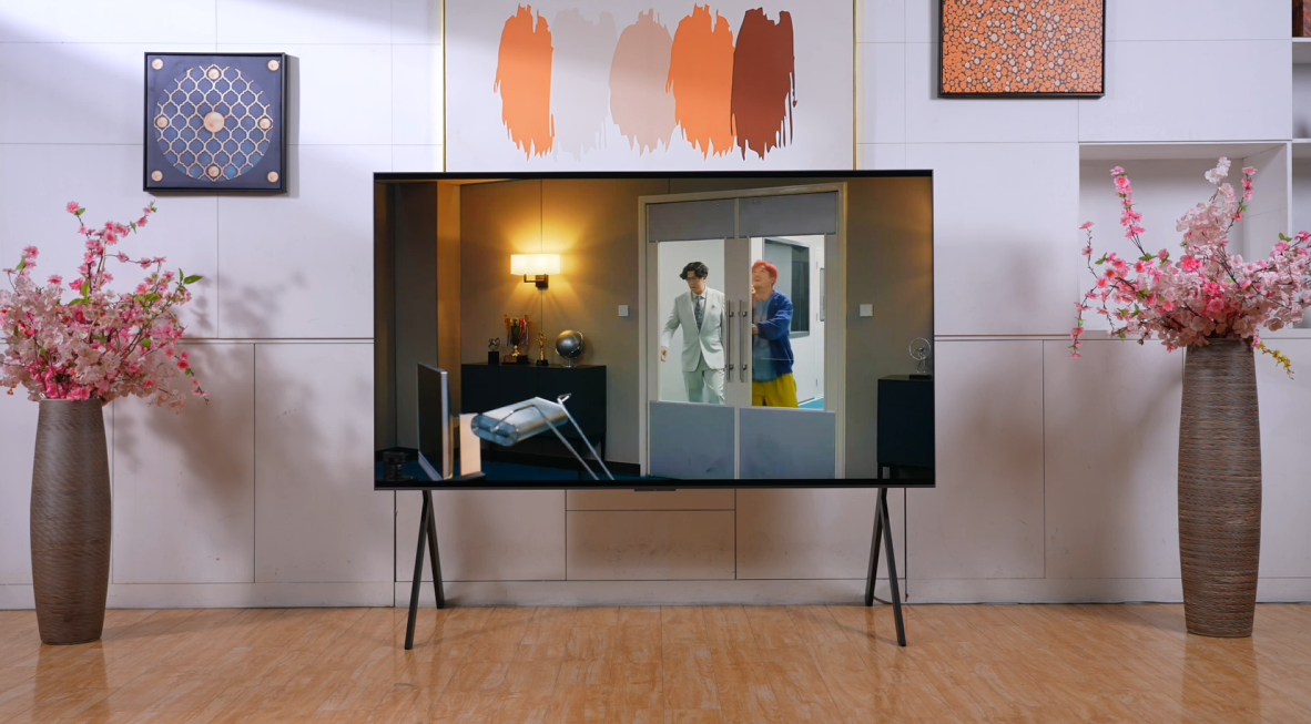 此外,极景·无黑边设计打造近乎100%屏占比,挂墙如同精致壁画,摆放桌面也简约大气,全家观影时沉浸感直接拉满。 搭载安桥 2.2.2 Hi-Fi 音响,配备天空声道与独立重低音炮,配合专业声学技术,可呈现层次分明、高保真的三维环绕声场,观影时沉浸感拉满。