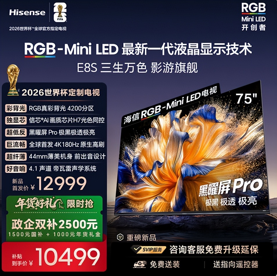 结合三款机型的性能表现和产品定价来看,如果你对品牌没有特别的倾向性,只是单纯追求极致画质,适配全家需求,同时产品稳定出色的高端电视,海信E8S无疑是最佳选择。它兼具领先技术、超高画质与诚意价格,马年焕新就买这款RGB-Mini LED影游旗舰,保证全家都有好彩头。