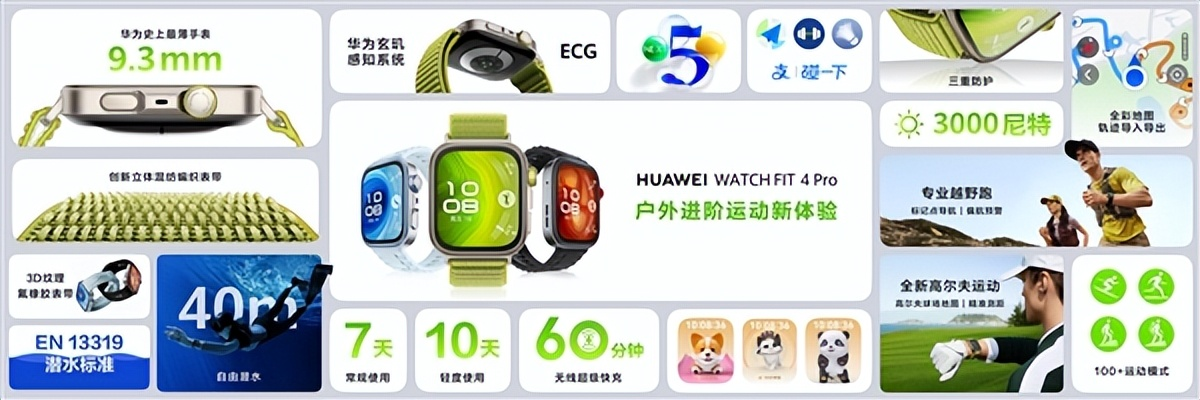 外观上,该系列不仅有多种材质的表带可以选择,还有多款表扣可以做为配饰,搭配可DIY表盘,让你随心进行腕上精装修,丰富穿搭可能。运动上,各种进阶运动也不在话下,比如专业越野跑、40米自由潜甚至高尔夫运动,WATCH FIT 4 Pro都能够完美支持。除此之外,全系还首发水上运动轨迹功能,支持7种水上运动,可以说是年轻人的高能运动搭子。
