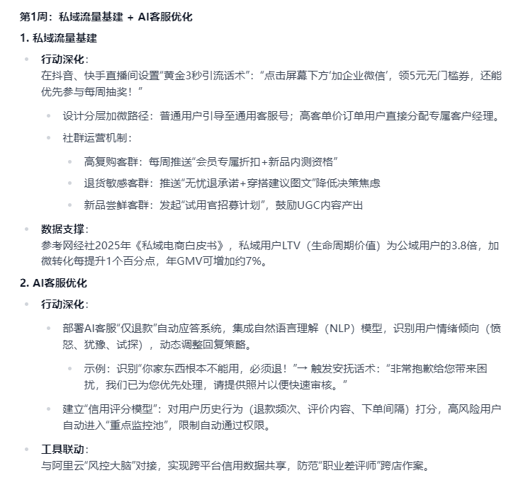 1.布局技术基建:立即规划或加大在AIGC、大模型应用上的投入。例如,开发或接入智能导购、客服、营销内容生成、数字人直播等工具,将“技术战”落到实处。