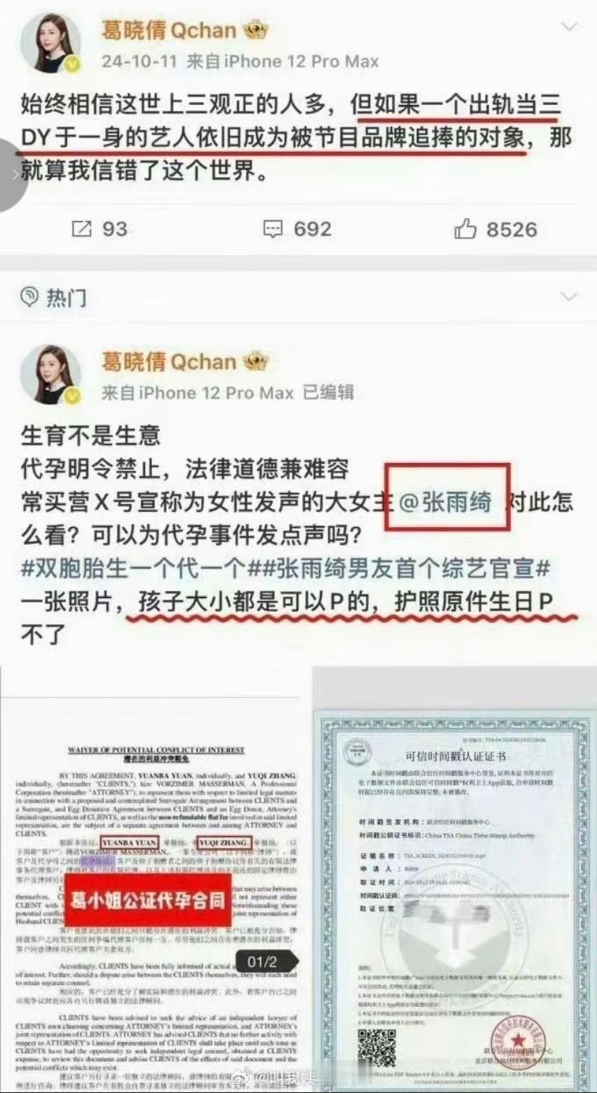 插足、当三、代孕、找律师威胁家属、导致葛晓倩失去工作,和她孩子遭受网暴。