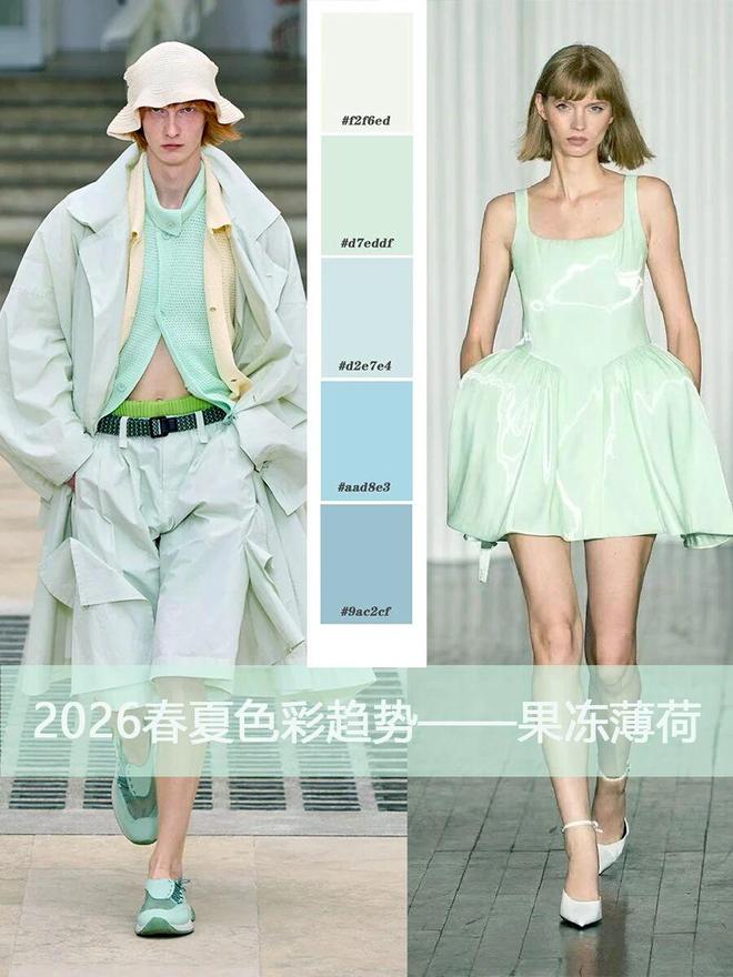 这也就意味着,2024 年我们先在社交平台刷到的薄荷曼波,其实正处于“色彩造势” “趋势启动期”;到 2026 年,才是它真正落地、成熟、适配大众衣橱的黄金流行年。