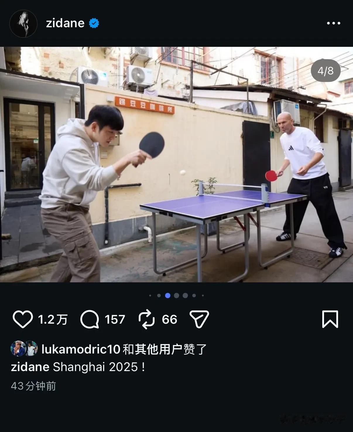 今天,齐达内在自己ins晒出了自己2025上海行的总结照片,其中有一张他和樊振东打乒乓球的照片。