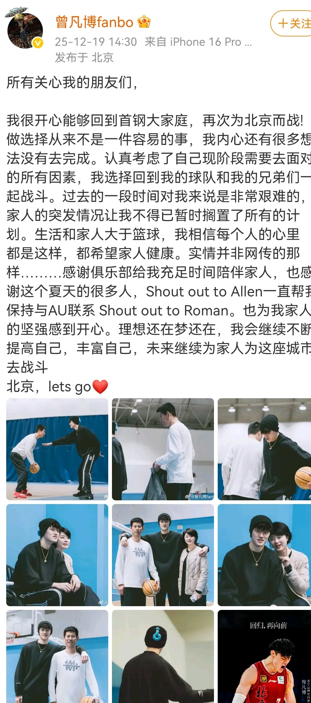 看来小曾的不仅是一名孝顺的孩子,而且并没有离开北京男篮的想法。成功完成续约后,北京队阵容正式完整,接下来他们将在新赛季全力冲击总冠军。