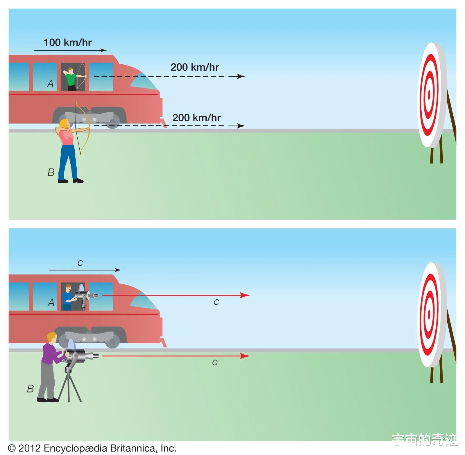 很早的时候,科学家们就在实验中发现光无论怎么被发射,哪怕在火箭上产生一束光,还是站在原地发射一束光,它们的速度竟然都一样!