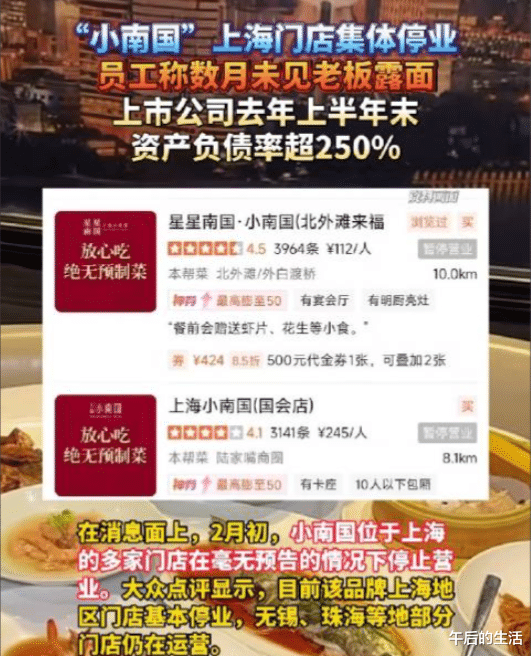 老牌餐饮的寒冬:上海小南国停业背后的生存启示 2月6日清晨,上海小南国金融街店员工章斌如往常般抵达门店,却遭遇意想不到的场景——考勤系统无法打卡,水电供应戛然而止。这家承载着上海人集体记忆的本帮菜餐厅,在未发布任何停业通知的情况下悄然闭店。