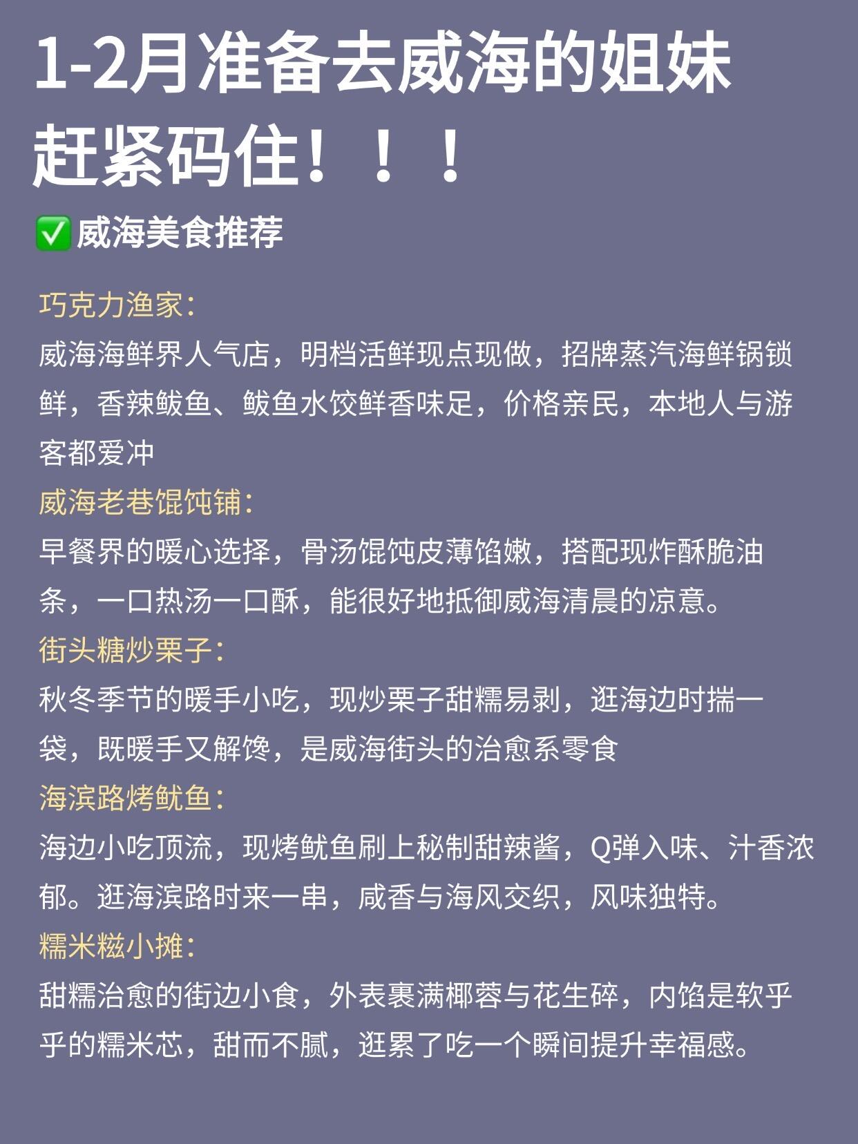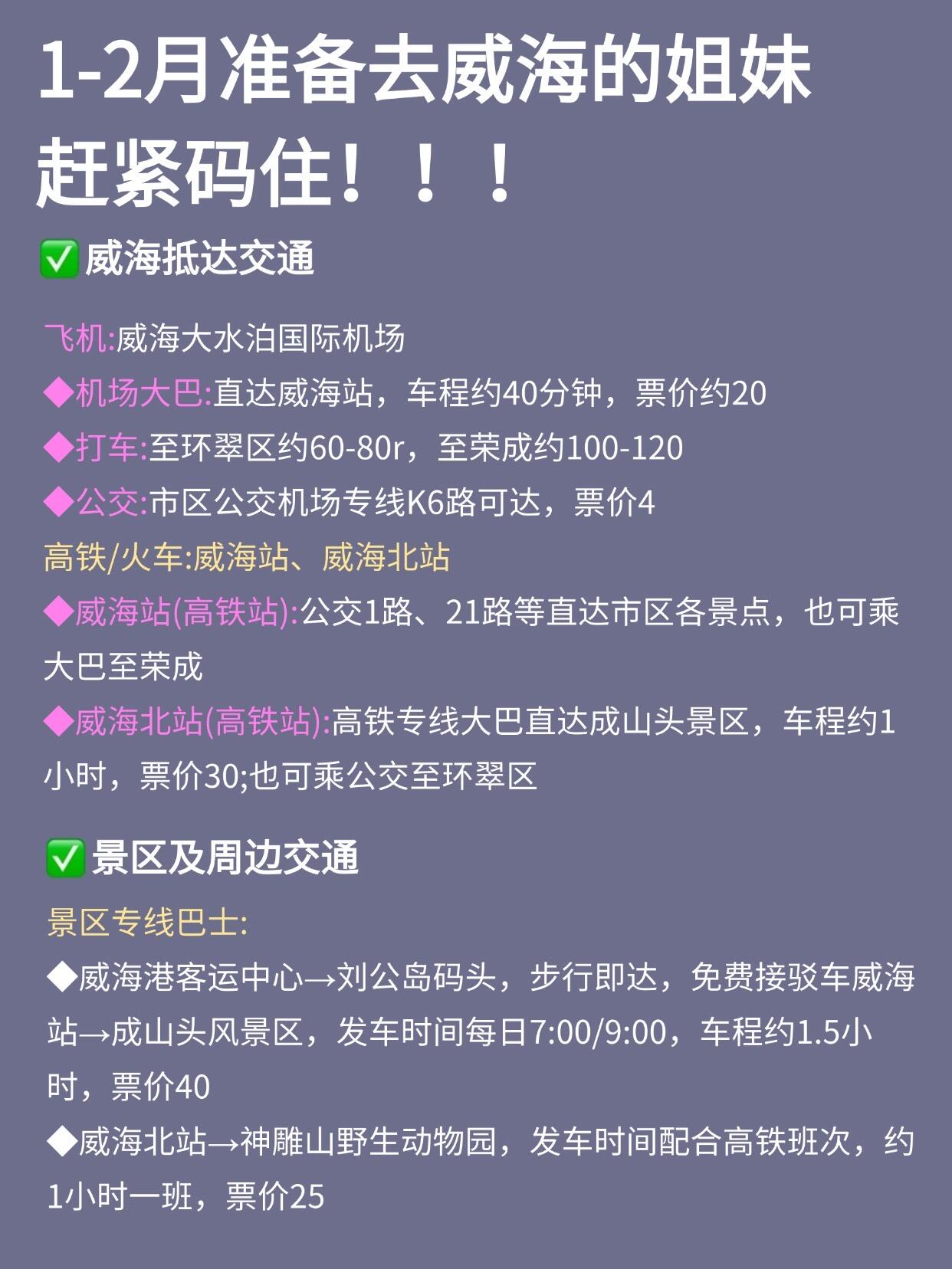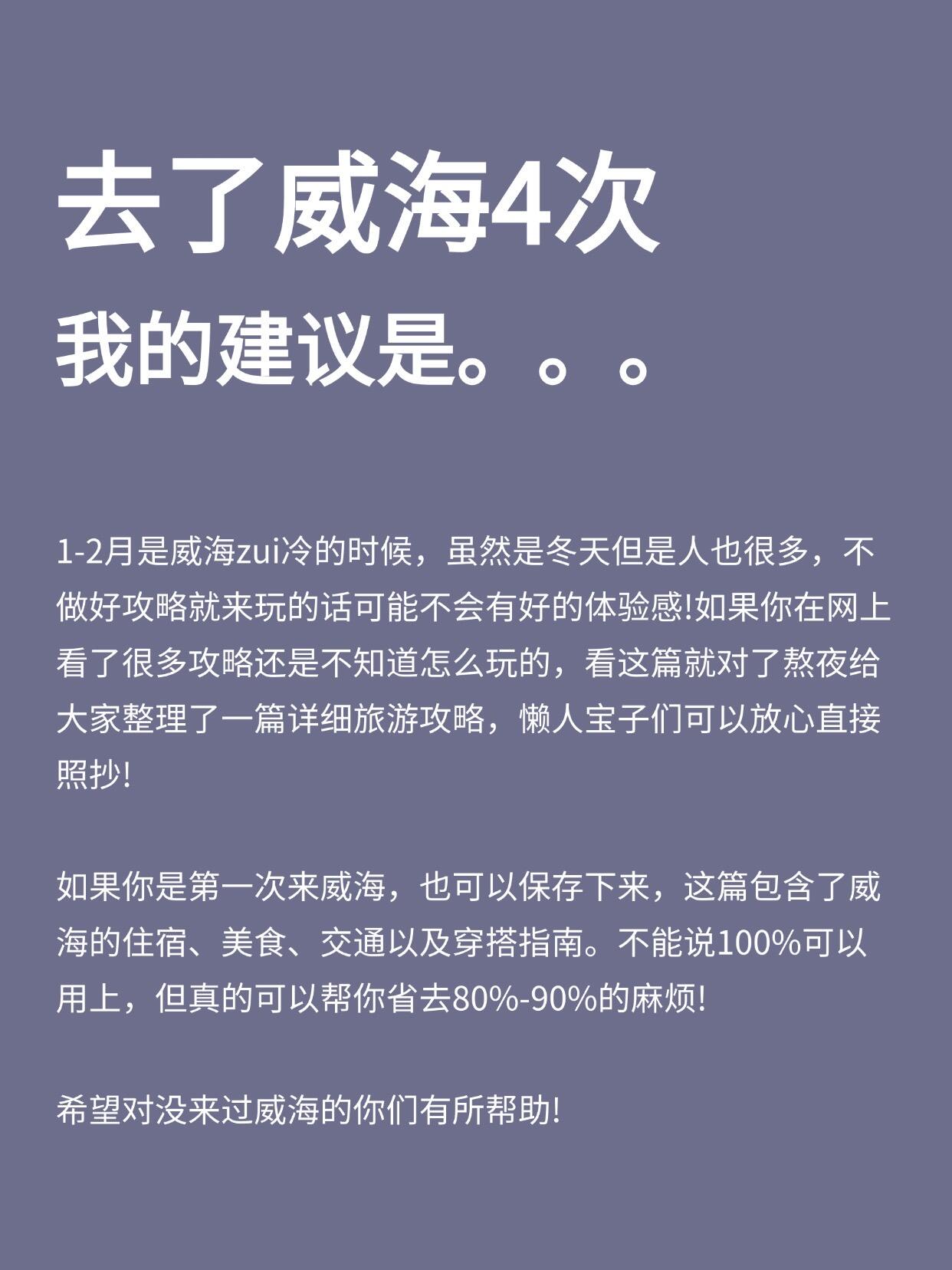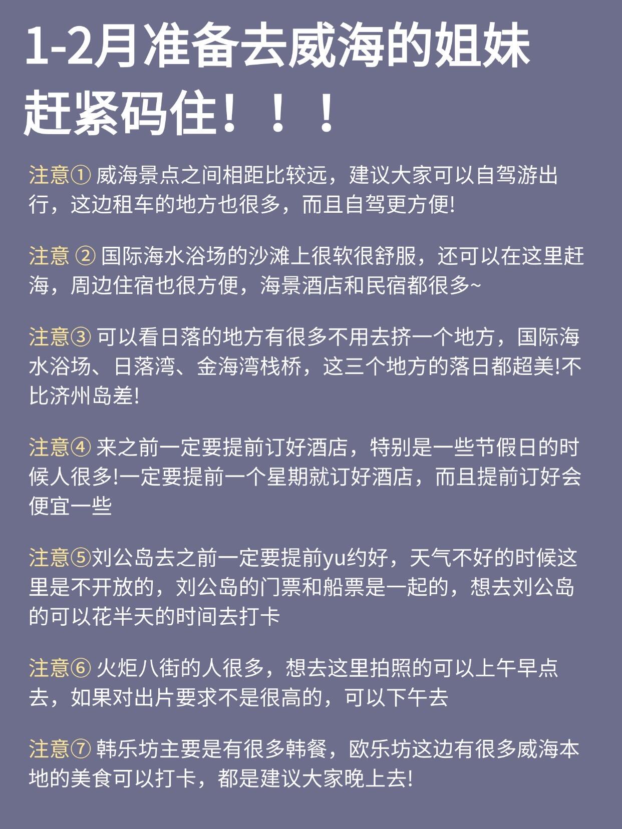 又刷到有姐妹跟着乱七八糟的攻略玩威海,然后体验感不好帖了!!我已经4刷威海了,为了让大家玩得更尽兴,特意熬夜总结了这个帖子,大家一定要🐴住✅