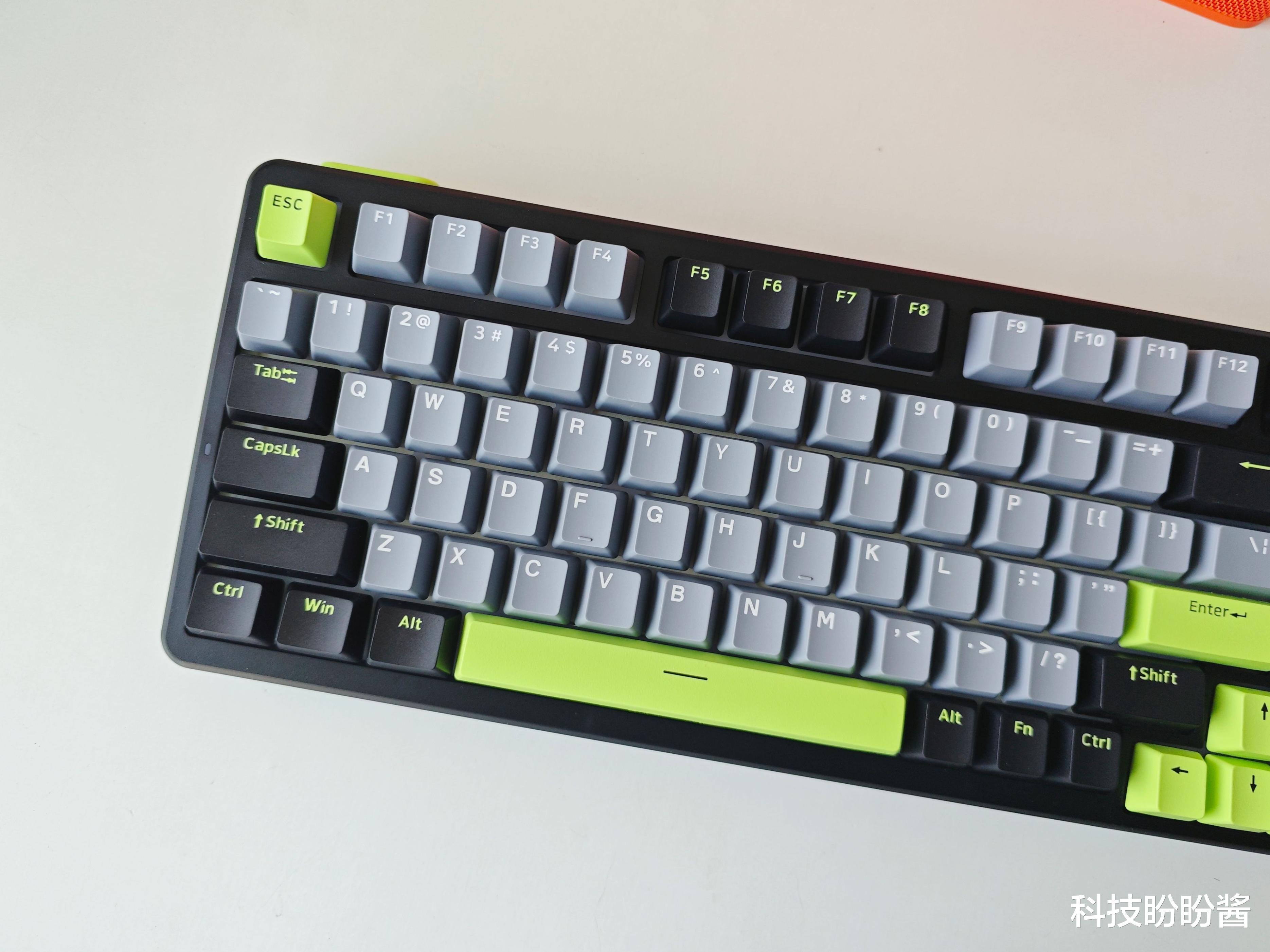 键帽的材质也很用心,采用的是高浓度PBT材质,搭配双色注塑工艺,使用时不仅手感细腻干爽,长时间使用也不会出现打油的情况,字符也不会轻易磨损。