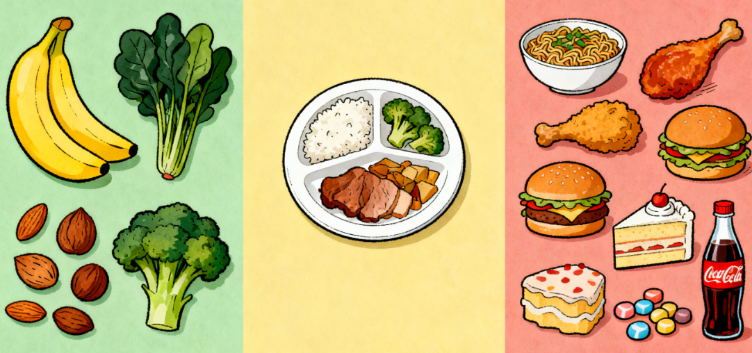 ◦ 绿灯食物多吃点:多吃富含钾、镁的食物,如香蕉、橙子、深绿色蔬菜、坚果(适量)。这些微量元素是维持心脏正常电活动的“稳定剂”。多吃粗粮、豆类,补充B族维生素,营养心肌。