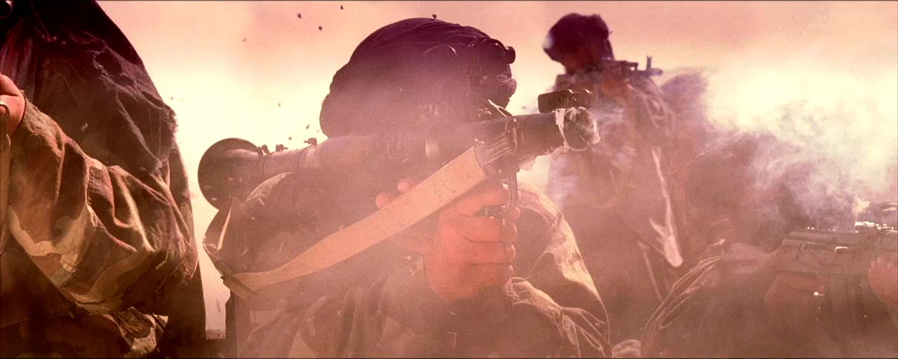 导演邦达尔丘克的功力在这片里展现得淋漓尽致。他用长镜头和快速剪辑,把战争的混乱和紧张感拍得活灵活现。摄影上,荒漠的黄沙和血色的夕阳对比强烈,视觉冲击拉满。剪辑节奏快而不乱,训练和战斗的切换自然得像呼吸。音效设计更是神来之笔,爆炸声、枪声、甚至士兵的喘息声,都让你觉得战争就在耳边。唯一的小瑕疵是,有些战斗场面特效略显粗糙,但瑕不掩瑜。