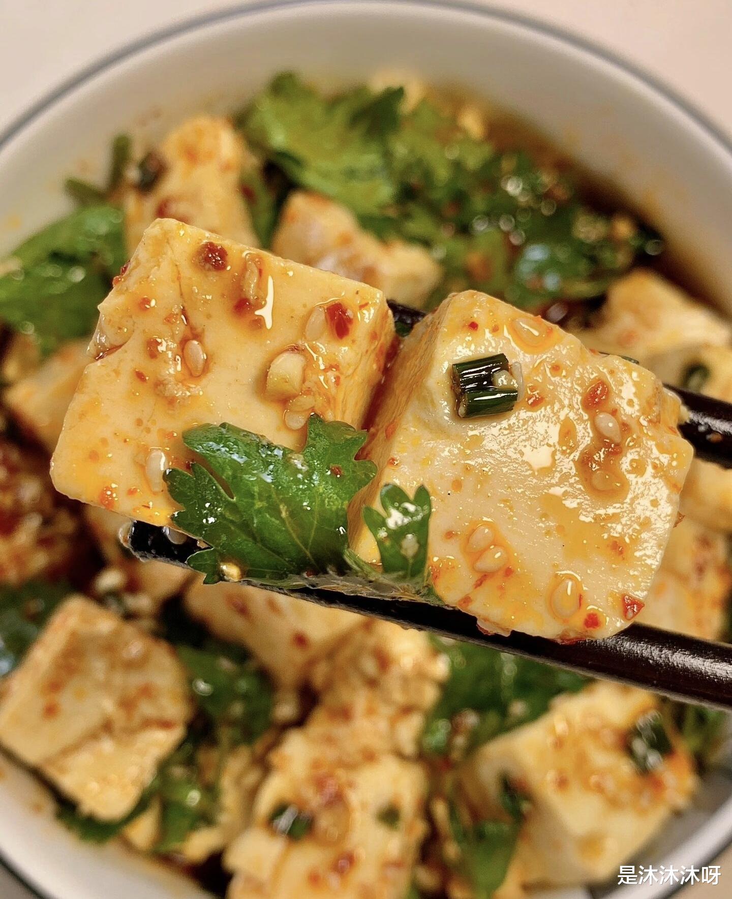 冬天最让人惊喜的凉菜,香菜拌豆腐必须拥有姓名!你看图里这碗,嫩嘟嘟的豆腐块裹着红亮亮的辣椒油,翠绿的香菜叶像小扇子一样铺在上面,芝麻花生碎簌簌落下,光是看着就让人暖了心。夹一筷子送嘴里,豆腐的嫩滑、香菜的清香、辣椒油的香辣、蒜末的辛香,还有一丢丢醋的酸爽,在舌尖上打了一架又和谐共处,所有的寒冷和疲惫,都被这碗菜治得服服帖帖,连碗都要舔干净。