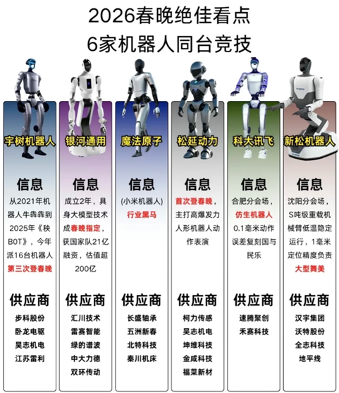 先是追觅集团官宣成为总台《2026年春节联欢晚会》智能科技生态战略合作伙伴。紧随其后的是魔法原子官宣成为智能机器人战略合作伙伴。魔法原子同样是由追觅科技孵化。