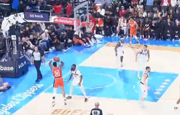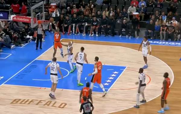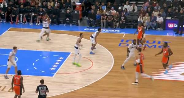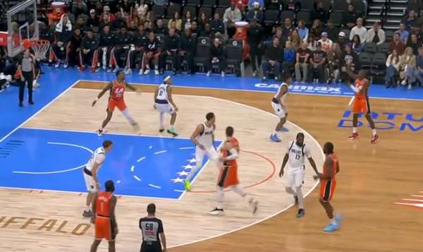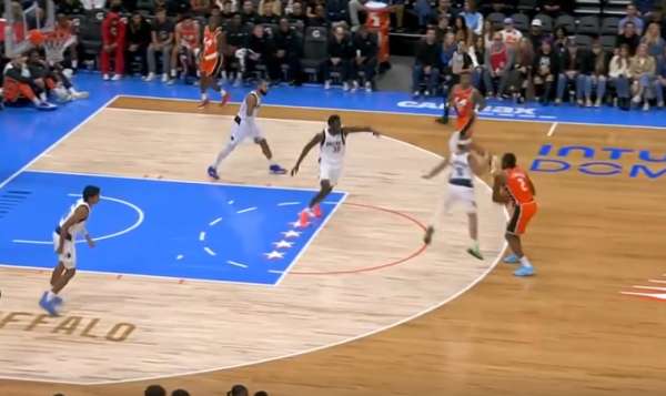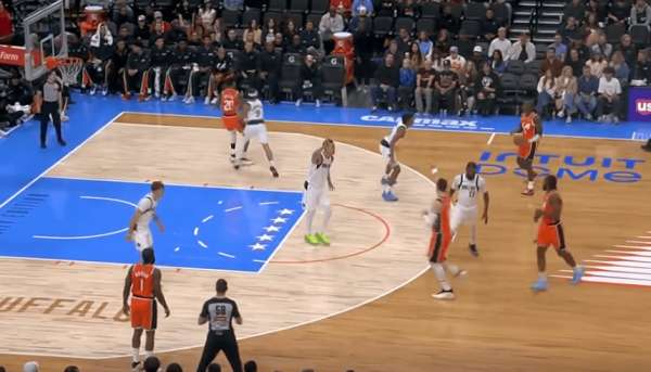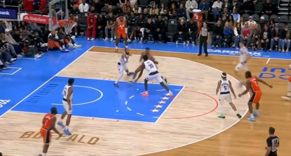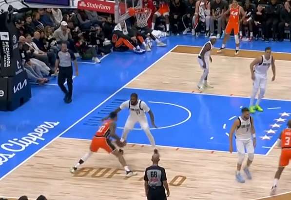 随后接伦纳德传球“蝴蝶穿花”从马丁、西塞两人之间穿过,
