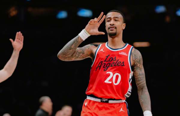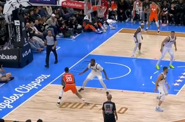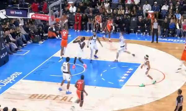 祖巴茨传球失误快船被打反击,科林斯在身处底角、没有天然身位优势的情况下,迅速退防并时刻观察球的动向,