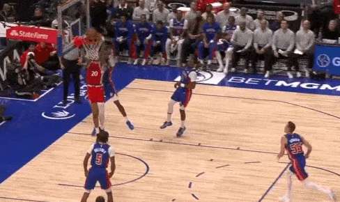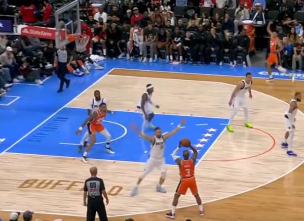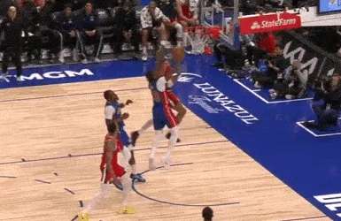 判断到艾维起步终结步点后起跳大帽拒绝。