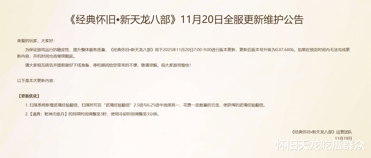除此外,就是明天原始服会新增一个服务器,就在明天周五晚7点。区服名【瑶光听雪】,这也是自原始服开服起时隔3个多月首次开新区。