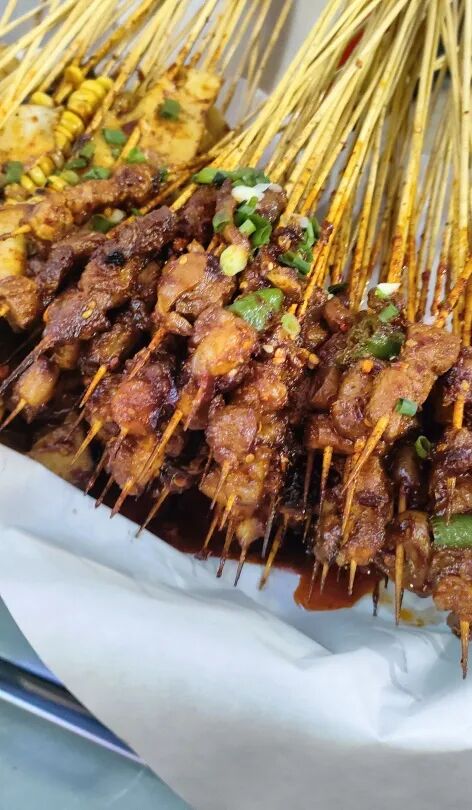 一家没有“环境”的烧烤店,就开在老城区的居民楼下,简易的棚子,户外几张桌子,就是用餐环境。但毫不影响其烤串的美味,和人来人往的客流。