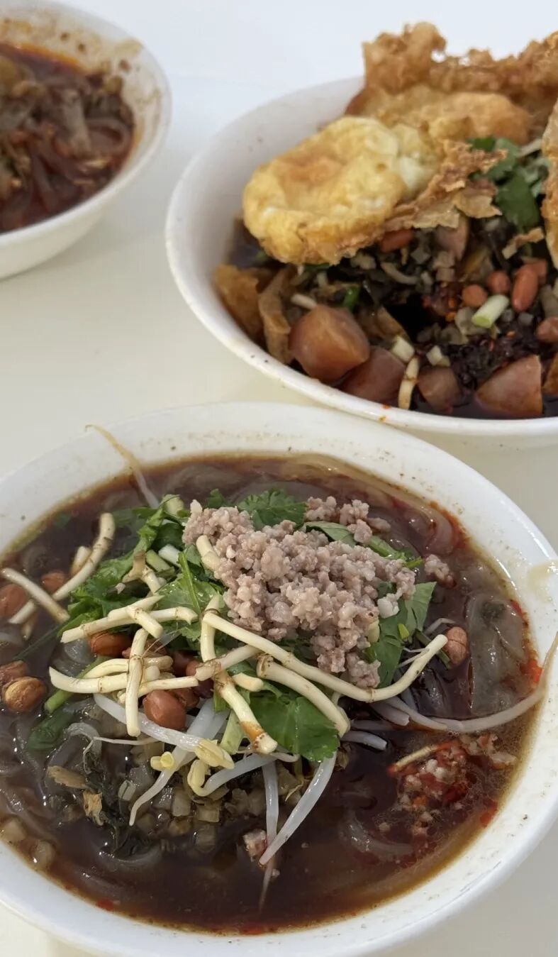 选好的粉就在卤汤里烫煮好,盛出来加入想吃的卤味配菜,撒上葱花香菜花生豆芽辣椒,放入调味料,淋上一勺卤汤,这味道卤香入味,是无论吃多少遍都已就上头的存在!