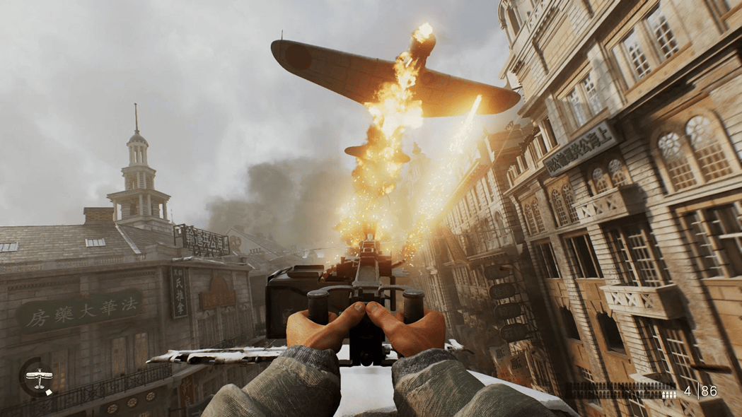 另一个是去年年底发售的《夺宝奇兵:古老之圈》,游戏里也同样有一个片段选取“淞沪会战”作为节点,游戏内出现了不少徽派建筑,甚至能看到“豫园”的影子,说明游戏有一定的考据。