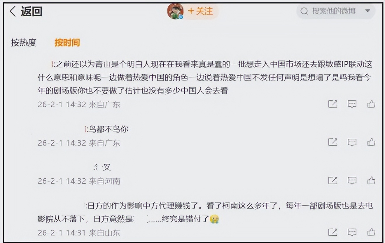 现在柯南的评论区已经彻底沦陷,微博、B 站、甚至外网账号下,全是中国网友的抵制留言。有人用英文留言:“我粉了柯南 10 年,但这次真的失望了,我外婆当年差点死在 731 的细菌战里”;还有人直接喊话官方:“要么中止联动公开道歉,要么彻底滚出中国市场,别想又当又立!”
