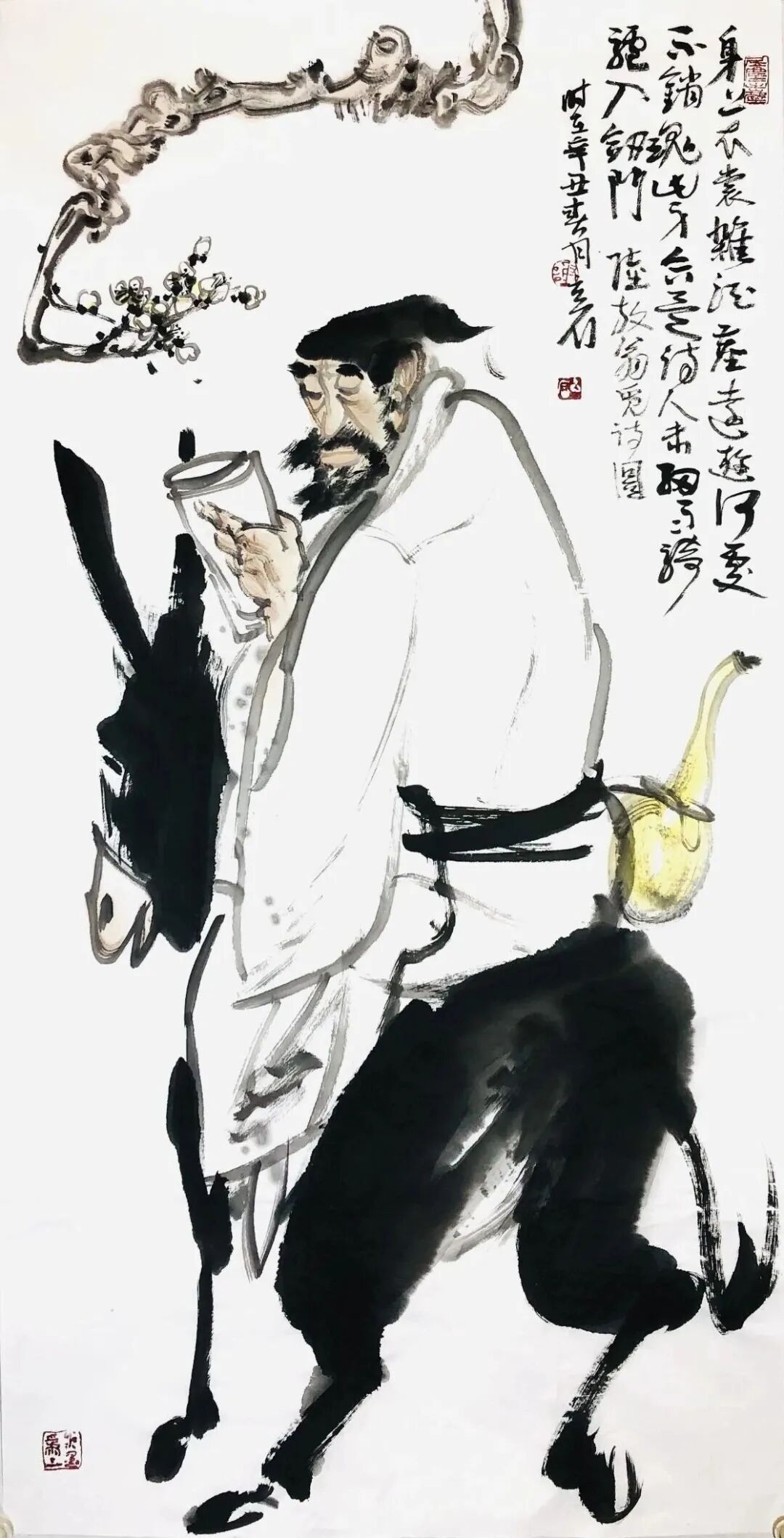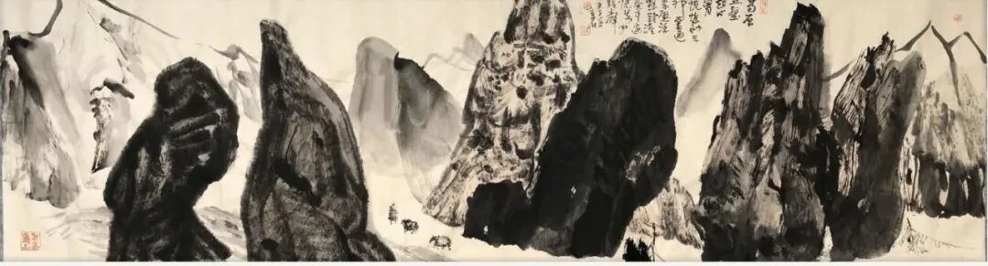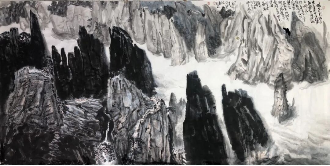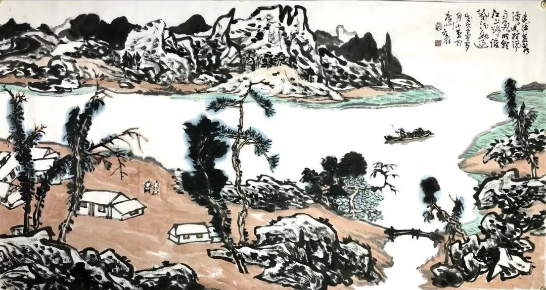 他的创作,始终扎根于传统绘画的深厚土壤。从晋唐的高古庄重,到宋元的文人意趣,再到明清的笔墨革新,他悉心揣摩历代名家的笔墨精髓与构图法度,却又不被古法所囿。他以“尊古为新”的态度,将传统笔墨的骨力、气韵,与当代人的审美视角和生命体验相融合,使作品既有古雅的韵味,又不失现代的活力。他笔下的线条,既有中锋的沉稳,又有侧锋的灵动,在提按顿挫间,展现出对传统笔法的深刻理解与创造性转化。“师法自然”则让他的笔墨充满了真实的情感与鲜活的生命力。他不满足于书斋中的案头作业,而是坚持走进名山大川、市井街巷,从自然万物与生活百态中汲取灵感。无论是山川的雄浑壮阔,还是草木的生机勃发,抑或是市井生活的质朴烟火,都化为他笔下的意象,让作品真气弥漫,意蕴悠长。